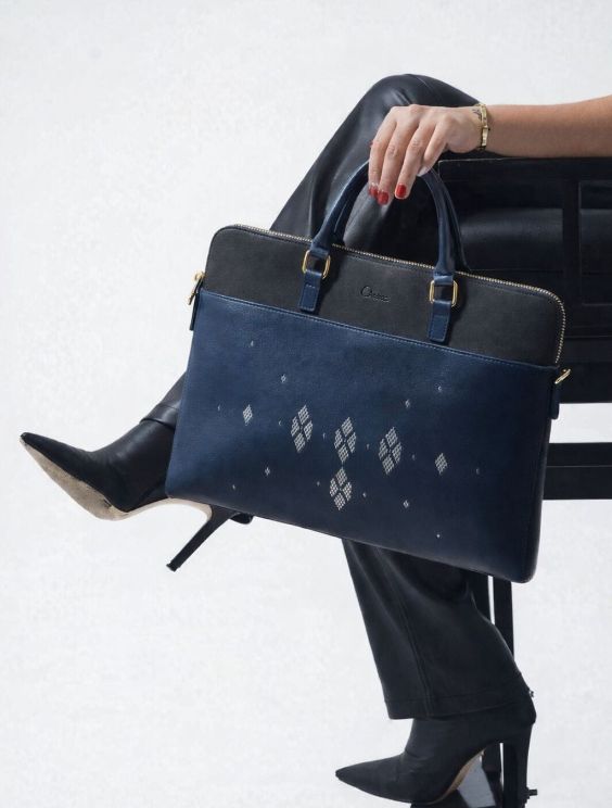 Crafted from premium microfiber vegan leather, this structured laptop bag blends modern elegance with traditional Al Naqda embroidery. Designed for everyday professionalism, it features sturdy top handles, a detachable shoulder strap, and secure zip closure.