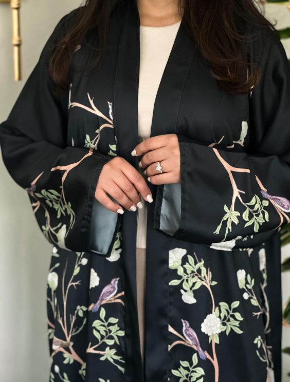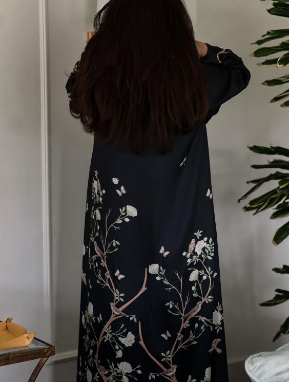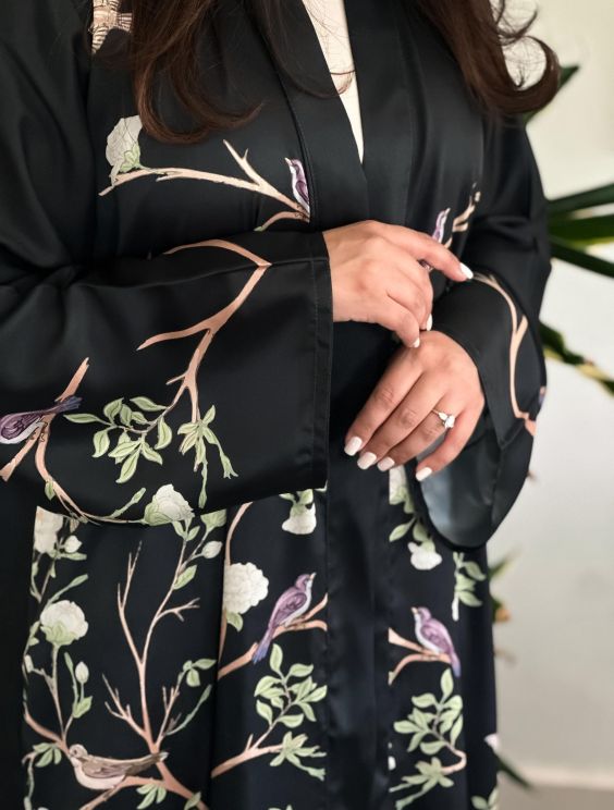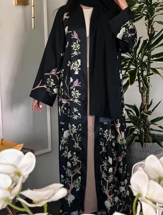 A timeless piece crafted from Polly Twill fabric, known for its soft and flowy drape. Designed in a standard 58-inch length (with the option to customize to any length), this abaya combines elegance with comfort. Paired with a sheer chiffon headscarf, it’s the perfect balance of modesty and sophistication.